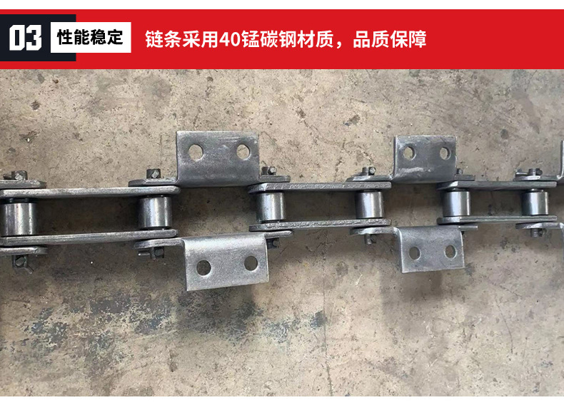 NE斗式提升機中都采用此種型號的鏈條,有NE15-NE800型號,NE15斗式提升機是單鏈,把板鏈用螺栓和料斗直接緊固在一起就行(NE板鏈上有固定的螺絲孔),NE30以上的斗式提升機都是雙鏈條的,安裝時在料斗的兩側平行擺好板鏈鏈條,在斗式提升機料斗的左右兩側分別用螺栓把鏈條和料斗逐個螺緊即可。