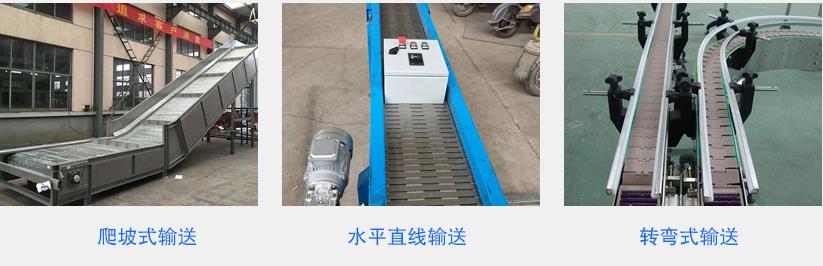 鏈板輸送機(jī)可根據(jù)您的需要選取不同寬度、不同形狀的鏈板來(lái)完成平面輸送、平面轉(zhuǎn)彎、提升、下降等要求,具體需要根據(jù)定制情況決定。
