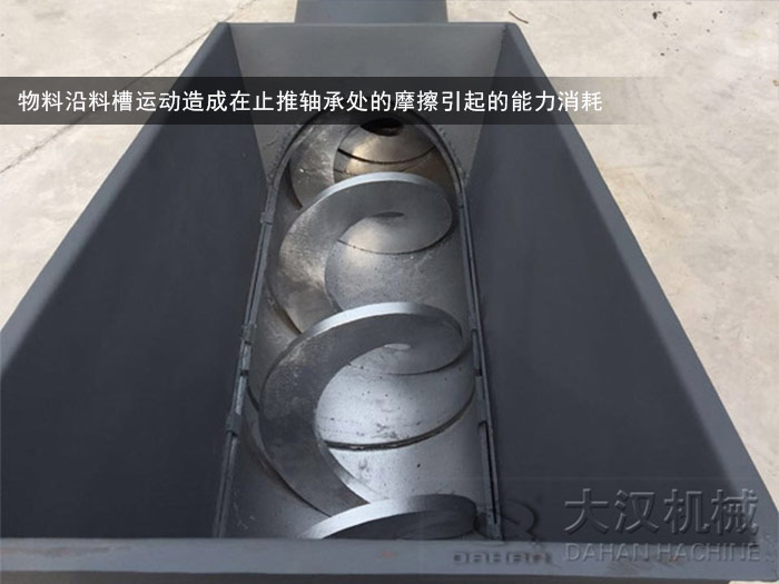 ④螺旋輸送機(jī)所輸送的物料沿料槽運(yùn)動(dòng)造成在止推軸承處的摩擦引起的能力消耗;